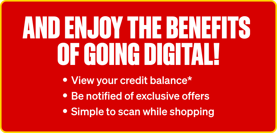 A digital version of your loyalty card that you can add to your Apple Wallet (iPhone) or Google Wallet (Android) device.
