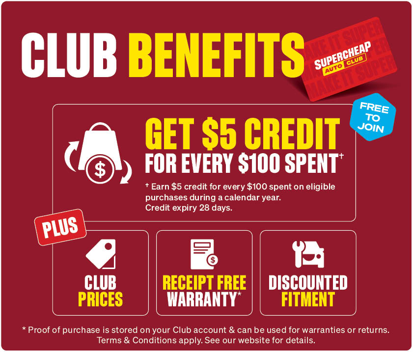 Illustrations, photos & packaging are only a representation of the products advertised, variations may occur from store to store, accessories shown in photographs are not included in the price unless specifically stated. All products were available at time of printing. Supercheap Auto will not be responsible for the lack of stock due to supplier problems. Supercheap Auto reserves the right to limit purchases to normal retail quantities. Not all items/offers available for online purchase. Online orders may incur a freight charge. All savings stated are off regular retail price. Club Prices are exclusive to Club members, join free in store or online. Afterpay & Zip conditions apply, more information available at www.supercheapauto.com.au/payments. Sale ends 15/03/2026 or unless sold out. Prices shown valid in Australia only.